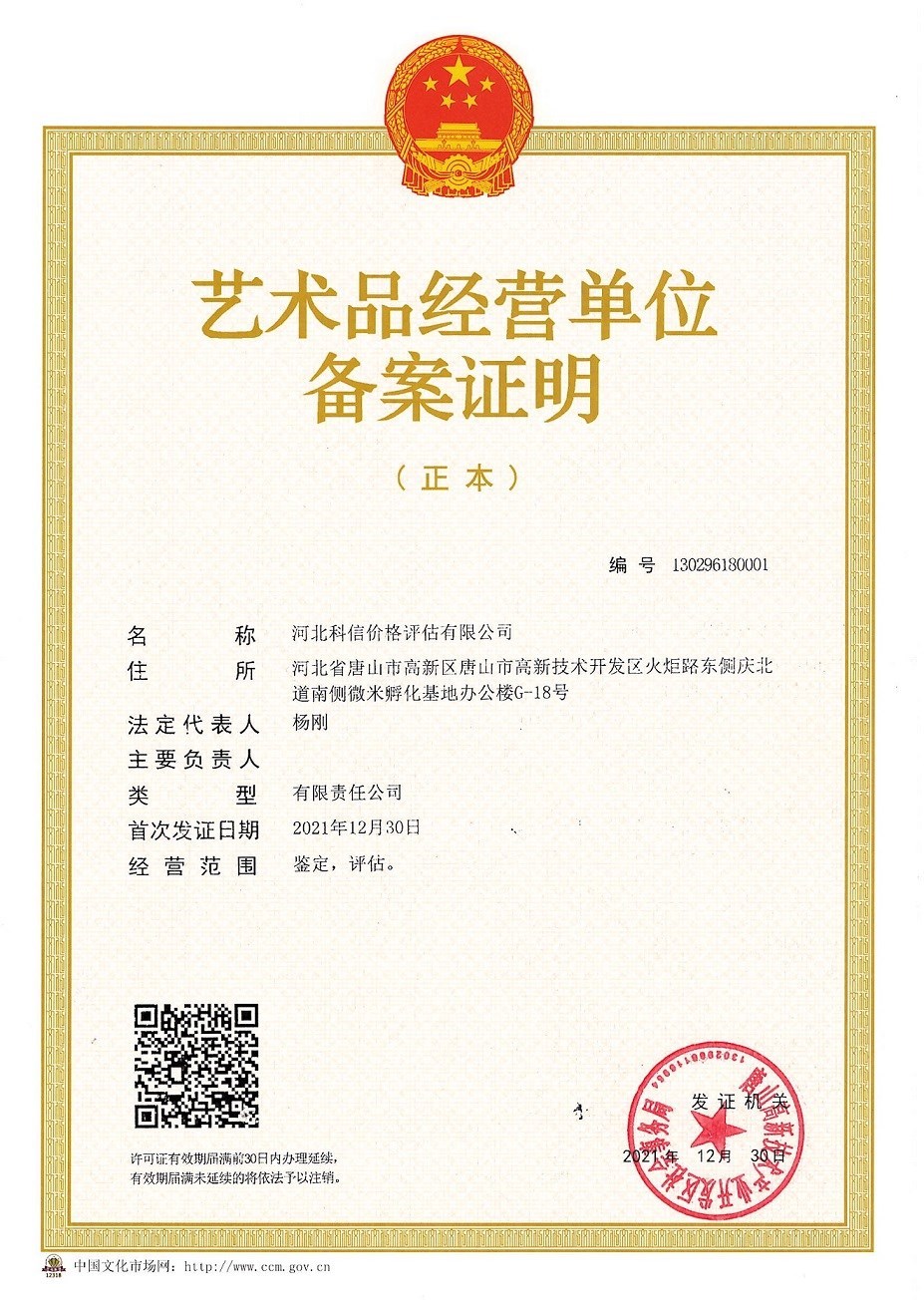 喜訊,我公司獲得文物藝術品評估資...
